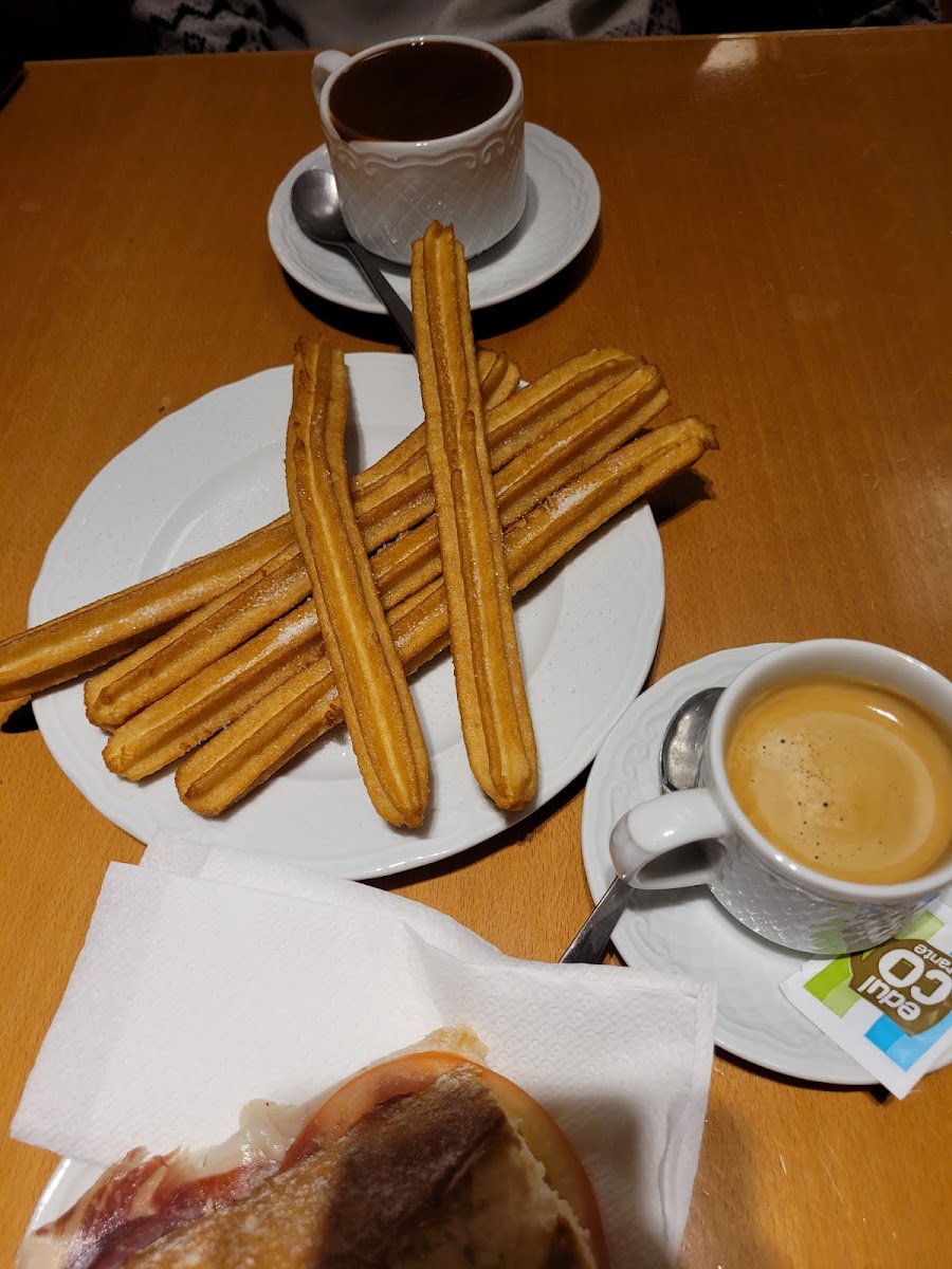 Inside, the atmosphere is calm and inviting, framed by gentle background music and multiple seating areas that accommodate both quick stops and more leisurely visits. There's also a small interior terrace, offering a quieter nook away from the street hustle, popular during mild weather. The clientele ranges from locals grabbing a morning café con leche to enjoy with a churro, to friends gathering for a relaxed chat paired with sweets.